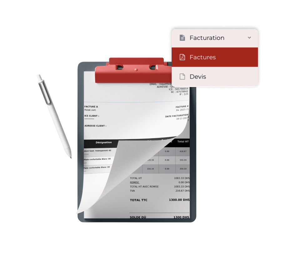 Générez des devis et des factures professionnels en toute simplicité , offrant une approche intuitive pour des transactions commerciales précises et professionnelles.